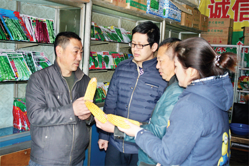 2月13日,原平市宇峰種業(yè)的農(nóng)技人員正在為前來購買種子的人們講解各種種子對土壤的適應(yīng)性和如何提高種植產(chǎn)量。目前該市農(nóng)民們已經(jīng)開始購買化肥、種子、農(nóng)機(jī)具等,為今年春耕做準(zhǔn)備。(趙春曉 攝)