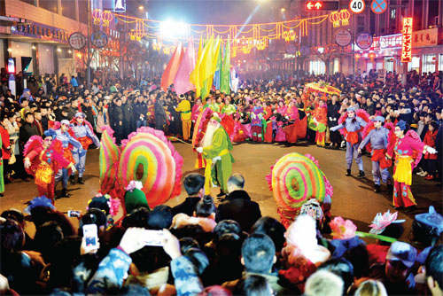 沒有了往年的大型彩門,沒有了往年的大型彩車,也沒有了往年的大型文藝隊(duì)伍,但彩燈仍然亮起來了,旺火仍然燃起來了,鼓樂也響起來了,人群也聚起來了,禮花也打起來了……2016年繁峙縣的元宵節(jié)是在一片節(jié)儉氛圍中進(jìn)行的,雖然聲勢(shì)規(guī)模小了,但元宵節(jié)的氛圍依然濃厚,人們歡樂的笑聲仍然在街道上蕩漾,繁峙人民過了一個(gè)節(jié)儉簡約、文明健康的元宵佳節(jié)。(李曉軍 攝)