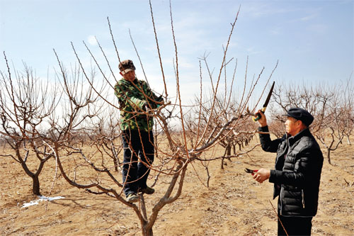代縣胡峪鄉(xiāng)望臺村作為全縣優(yōu)質(zhì)干鮮果基地,家家戶戶靠栽植干鮮果樹發(fā)家致富,現(xiàn)已發(fā)展白水杏、仁用杏1900多畝,去年僅干鮮果一項就收入640萬元,全村人均純收入6000余元。嘗到甜頭的果農(nóng)們,正月十五一過就開始著手修剪果樹,期盼今年干鮮果獲得大豐收,將腰包進一步鼓起來。圖為果農(nóng)在修剪果樹。(石俊文 劉睿 攝)