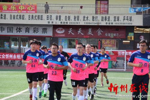 比賽現(xiàn)場(chǎng)氣氛熱烈,球員們你追我趕,配合默契,盡情揮灑著汗水。本屆足球比賽的9 支球隊(duì)全部為業(yè)余球隊(duì),運(yùn)動(dòng)員來(lái)自各行各業(yè)。首場(chǎng)比賽由忻州傳奇隊(duì)對(duì)戰(zhàn)忻州水建麗寶隊(duì)。