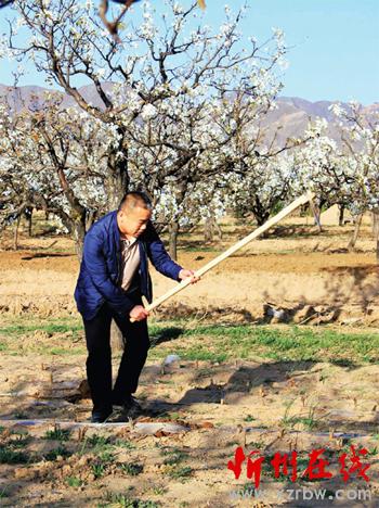 4 月16 日,游人在原平市萬畝梨園中欣賞梨花綻放美景的同時,從農(nóng)民手中“搶”過镢頭,幫助農(nóng)民刨地松土,體驗勞作辛苦,分享勞動之美。城鄉(xiāng)一體化建設(shè),新農(nóng)村景觀吸引了城市市民,節(jié)假日、周末城里人紛紛走出“水泥森林”,深入到農(nóng)村,不僅享受春光踏青賞花的樂趣,而且在鄉(xiāng)村游中,與廣大農(nóng)民一起勞動,同吃同住,體會農(nóng)耕文化之韻。(吉建平 攝)