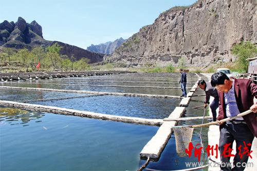 素有“江南水鄉(xiāng)”美稱的五臺縣陳家莊鄉(xiāng),是一個海拔只有640 米的秀美山鄉(xiāng),在五臺農(nóng)村商業(yè)銀行“金融扶貧”、“水產(chǎn)信貸”等專項貸款的大力扶持下,鄉(xiāng)黨委、鄉(xiāng)政府圍繞得天獨厚的泉水資源, 號召農(nóng)民發(fā)展水產(chǎn)養(yǎng)殖業(yè)。村民們先后建成5 個露天養(yǎng)魚場,投放名貴紅鱒魚苗150 萬尾,今年產(chǎn)量可望達到1.3 萬公斤,以每公斤68元的價格遠銷北京、西安,近銷太原、忻州、五臺山,年收入可達88 萬元。圖為村民們在山泉水養(yǎng)魚池撈魚。(金俊賢 鄭光 攝影報道) (責任編輯:李冬梅) |