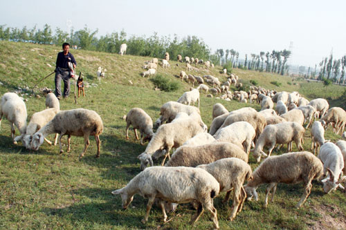 9月21日,原平市張家莊村農(nóng)民正在草坡上牧羊,新品種羊,個(gè)個(gè)長的滾瓜溜圓,。該市大力引導(dǎo)農(nóng)民發(fā)展養(yǎng)殖業(yè),多措并舉,加快農(nóng)民脫貧致富實(shí)現(xiàn)小康夢。(趙春曉 攝)