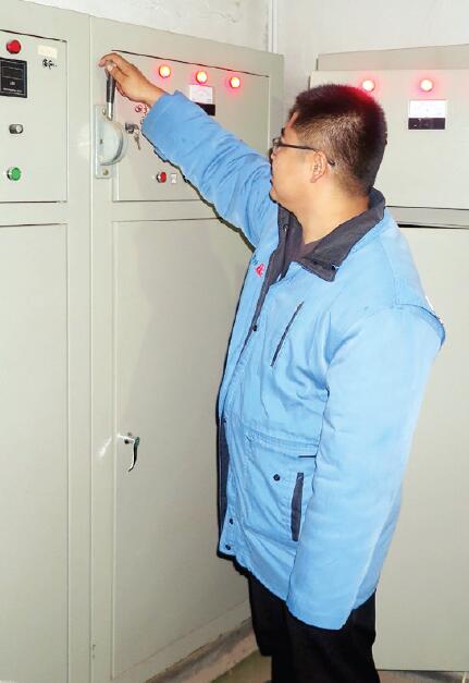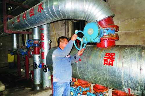 圖為供熱站工作人員正在調(diào)試機器