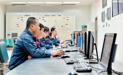 圖為10月27日,忻州廣宇煤電有限公司工作人員正在機組運行控制室操作和監(jiān)控設(shè)備。(張志遠 攝)
