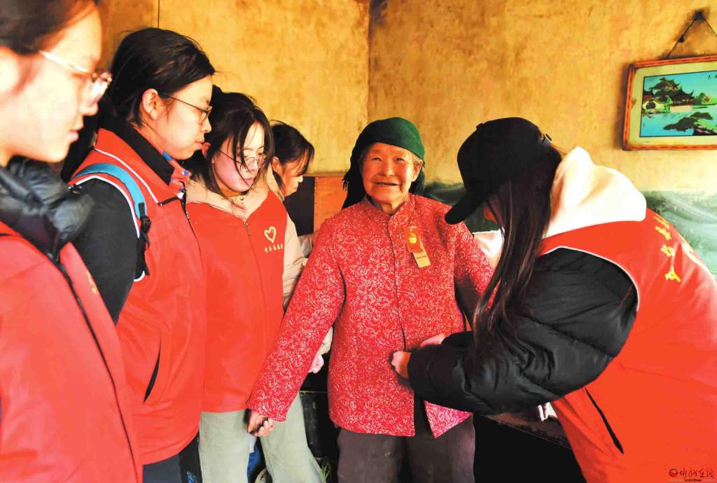 近日,五臺縣志愿者協(xié)會協(xié)同工業(yè)園社區(qū)志愿者和大學(xué)生志愿者,帶著精心準(zhǔn)備的年貨,走進溝南鄉(xiāng)翟子溝村、東雷鄉(xiāng)東山底村、陳家莊鄉(xiāng)王城村等地,看望慰問十二戶孤寡老人和困難家庭,向他們送上社會各界的關(guān)懷和新春的溫暖祝福。圖為志愿者為腿腳不便的高齡老人試穿新衣服。(盧俊華 攝)