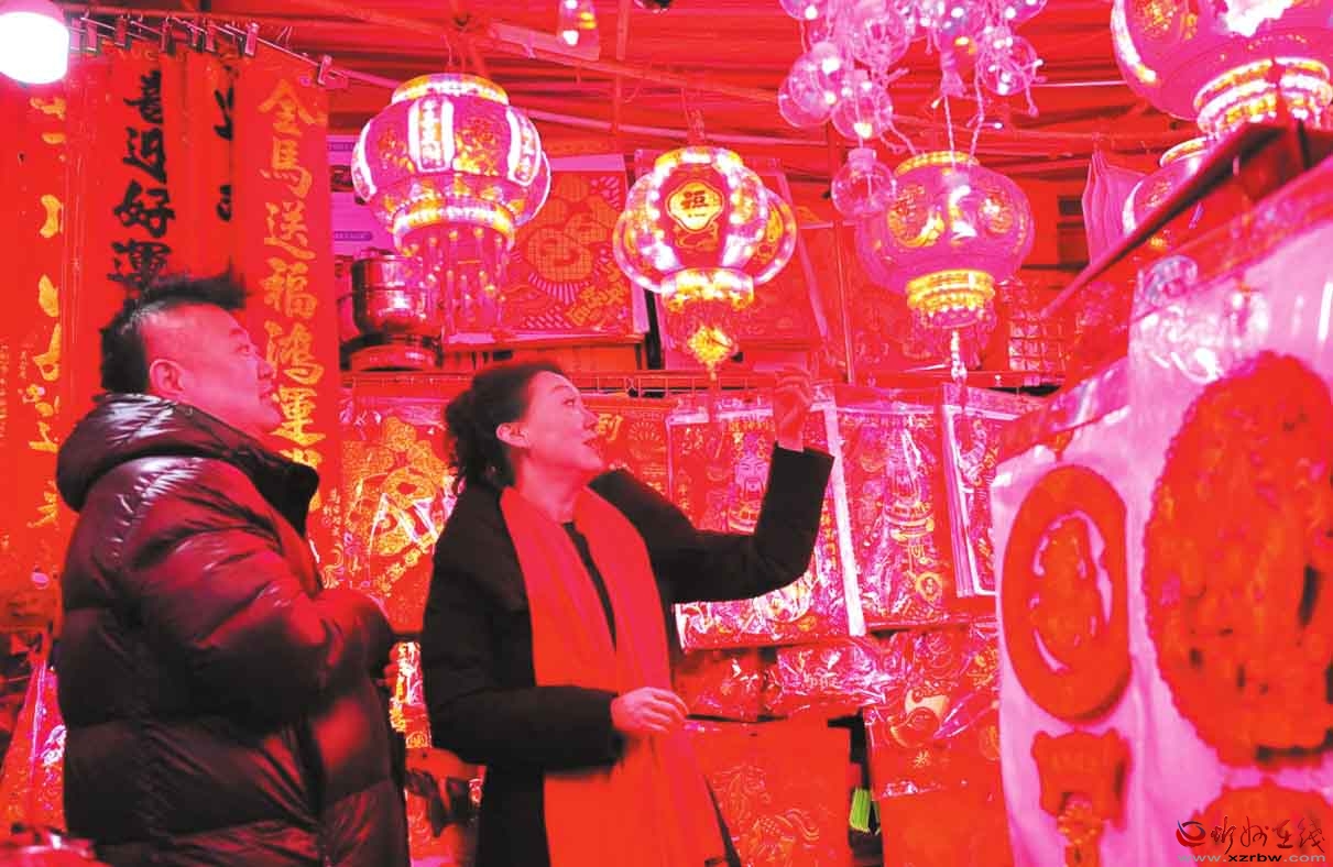新春將近,寧武縣消費(fèi)市場(chǎng)年味濃郁,紅燈籠作為迎新春的經(jīng)典元素,成為年貨市場(chǎng)的“主角”。圖為市民正在采購燈籠。(吳光宇攝)