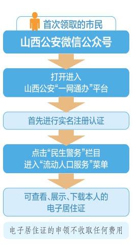 首次領取的市民,只需打開山西公安微信公眾號進入山西公安“一網(wǎng)通辦”平臺,實名注冊認證后,點擊“民生警務”欄目,進入“流動人口服務”菜單,即可查看、展示、下載本人的電子居住證。電子居住證的申領,不收取任何費用。記者看到,“一網(wǎng)通辦”平臺里的電子居住證登載了流動人口的姓名、性別、民族、人像、公民身份號碼、戶籍所在地、現(xiàn)居住地址、有效期限等信息,并新增了二維碼核驗信息。