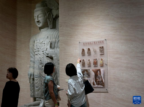 10月9日,參觀者在趣看美術(shù)館參觀云岡文物。(新華社記者 劉穎 攝)