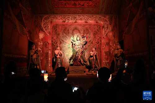 10月12日晚,洞窟式沉浸體驗劇《樂動敦煌》精彩上演,為前來甘肅省敦煌市參加“世界市長對話·敦煌”活動的中外嘉賓上演一場精彩的文化盛宴。
