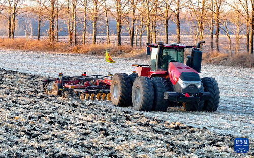10月23日,農(nóng)機(jī)在黑龍江北大荒農(nóng)業(yè)股份友誼分公司田間進(jìn)行整地作業(yè) (無(wú)人機(jī)照片)。(新華社發(fā) 徐宏宇 攝)