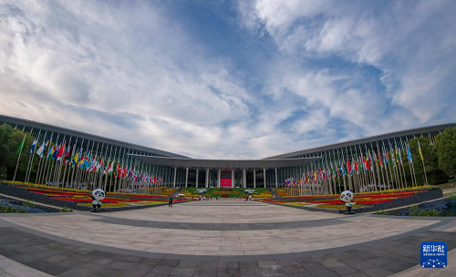 這是裝飾一新的國家會展中心(上海)南廣場(11月3日攝)。(新華社記者 方喆 攝)
