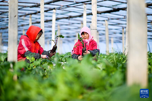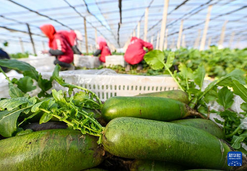 11月20日,在天津市西青區(qū)辛口鎮(zhèn)種植沙窩蘿卜的大棚內(nèi),農(nóng)民在采摘蘿卜。(新華社記者 趙子碩 攝)