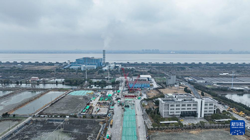 1月20日拍攝的錢塘江高鐵盾構(gòu)隧道施工現(xiàn)場(無人機(jī)照片)。(新華社發(fā) 王欣 攝)
