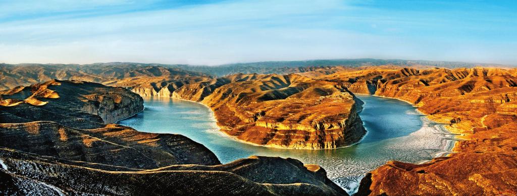 忻州是黃河入晉第一市,市域內(nèi)黃河流經(jīng)偏關(guān)、河曲、保德三縣,全長(zhǎng)171公里。黃河在忻州締造了一系列神奇的自然奇觀和神秘的人文傳說(shuō),不僅有黃河、長(zhǎng)城“雙龍并行”的身影,還在老牛灣留下了黃河與長(zhǎng)城握手的“佳話”,乾坤灣被稱為“中國(guó)的科羅拉多”,河曲縣娘娘灘有著“天下黃河第一灘”的美譽(yù),黃河在保德縣則呈“V”形河谷,蔚為壯觀。
