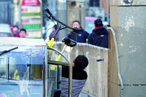 市民龔先生告訴北京晨報記者,昨天早上,在立水橋南公交站牌旁,一名黑摩的司機(jī)下車后先后將人行道上并排停放的三輛小黃車猛地砸到馬路中央,之后男子并沒有停手,又跑到地鐵站天橋下將一排小黃車踹倒。