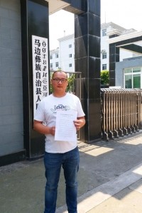 5月27日宣判無罪后,朱晉川在馬邊縣法院外留影。華西都市報-封面新聞記者丁偉 受訪者供圖