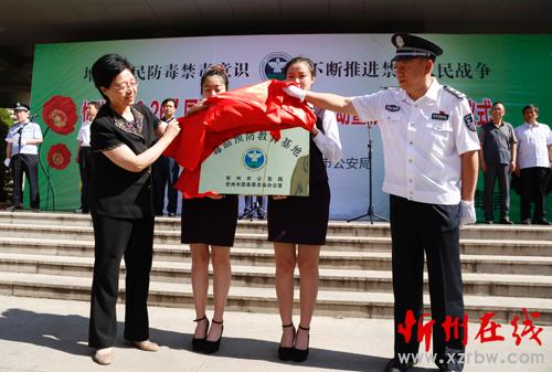 市公安局局長楊梅喜、忻州師范學院院長張虎芳共同為毒品預防教育基地揭牌