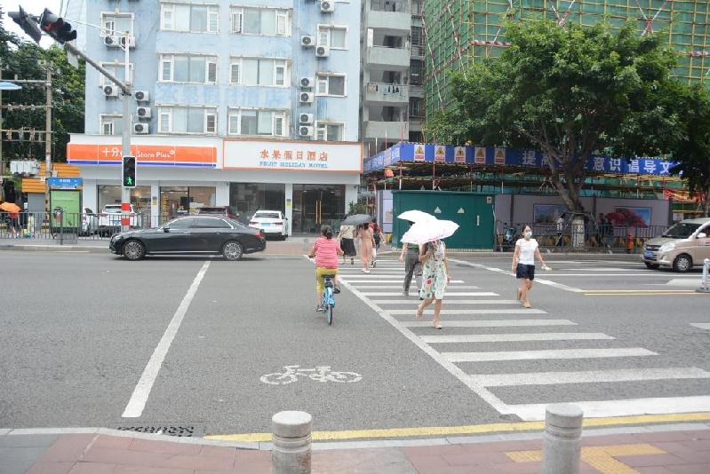 圖為8月1日記者拍攝的廈門體育路與育秀東路交叉口的非機(jī)動車與行人分流的斑馬線。新華社記者顏之宏 攝