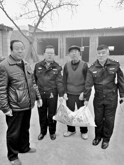 近年來(lái),大隊(duì)把扶貧工作當(dāng)作一項(xiàng)政治任務(wù)抓在手上,為了更好地精準(zhǔn)扶貧,按計(jì)劃力爭(zhēng)提前完成扶貧攻堅(jiān)任務(wù)。2015年,李晉生擔(dān)任了原平市南白鄉(xiāng)尚義村的第一書(shū)記,負(fù)責(zé)該村的幫扶工作。南白鄉(xiāng)尚義村是原平市的重點(diǎn)貧困村,也是交警大隊(duì)幫扶村,全村204人,貧困人口占80%。當(dāng)年12月17日,他自籌2000多元,購(gòu)買(mǎi)了米、面、糧、油,與大隊(duì)的4位民警來(lái)到了南白鄉(xiāng)尚義村走訪慰問(wèn)特困家庭。在全市開(kāi)展精準(zhǔn)扶貧的攻堅(jiān)階段,為了讓特困家庭度過(guò)溫暖的冬季,交警大隊(duì)民警進(jìn)村入戶共慰問(wèn)五保戶、特困戶8戶,為他們送去了面粉、大米和食用油。同時(shí),大隊(duì)長(zhǎng)還看望了90歲高齡的抗戰(zhàn)老兵趙書(shū)良,1925年出生的趙書(shū)良老人,17歲時(shí)就參軍,在抗日戰(zhàn)爭(zhēng)中多次立功授獎(jiǎng)。當(dāng)老人雙手接過(guò)慰問(wèn)金后,激動(dòng)地說(shuō):“還是共產(chǎn)黨好,人民警察和人民真是心連心?。 ?