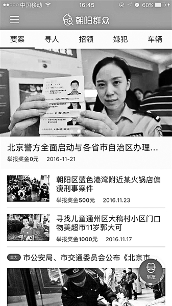 “朝陽群眾”因參與破獲多起明星吸毒等大案、要案被眾多網(wǎng)友熟知,并被網(wǎng)友戲稱為世界王牌情報(bào)組織。近日,一款名為“朝陽群眾”的APP悄然上線,隨即引發(fā)關(guān)注。 就在眾多網(wǎng)友討論這款A(yù)PP是否為警方研發(fā)時(shí),2月13日晚,北京市公安局朝陽分局發(fā)布消息,證實(shí)這款A(yù)PP為朝陽警方會(huì)同相關(guān)單位研發(fā),目前已進(jìn)入上線測(cè)試階段。此外,警方表示,希望借助這個(gè)警民合作平臺(tái),共同為社會(huì)治安、城市發(fā)展貢獻(xiàn)力量。警方人士透露,屆時(shí)將為熱心舉報(bào)的市民身份進(jìn)行保密,并為成功舉報(bào)者提供適當(dāng)獎(jiǎng)勵(lì)。 事件 “朝陽群眾”APP上線引熱議 得益于有著“世界王牌情報(bào)組織”之稱的北京朝陽群眾,APP“朝陽群眾HD”剛一上線,便引發(fā)眾多網(wǎng)友關(guān)注。 北京青年報(bào)記者下載該APP發(fā)現(xiàn),使用該軟件需要用手機(jī)號(hào)碼注冊(cè)。注冊(cè)后,應(yīng)用頁面被劃分為“要案”、“尋人”、“招領(lǐng)”、“嫌犯”和“車輛”等多個(gè)板塊。此外,該軟件還內(nèi)置“熱心舉報(bào)”功能,點(diǎn)擊后可出現(xiàn)“兒童拐賣”、“疑似嫌犯”、“老人走失”、“肇事違章”、“遺失招領(lǐng)”和“其他舉報(bào)”的分類,可通過拍攝小視頻、照片和文字進(jìn)行相關(guān)“舉報(bào)”。 但北青報(bào)記者注意到,APP頁面上的新聞并非最新信息,均為2016年下半年消息,已有數(shù)月未更新。此舉也引發(fā)部分網(wǎng)友質(zhì)疑:“朝陽群眾HD”是否由警方開發(fā)?注冊(cè)手機(jī)號(hào)后進(jìn)行“舉報(bào)”是否存安全隱患? 細(xì)節(jié) 開發(fā)公司“覆蓋多警種視頻業(yè)務(wù)” “朝陽群眾HD”顯示,該款A(yù)PP是一個(gè)集成警民合作,案件下發(fā),群眾上傳的平臺(tái),“公安民警聯(lián)合民間力量,對(duì)一些案件進(jìn)行線索搜集,并且同時(shí)得到一些可疑情況的舉報(bào),為社會(huì)治安、城市發(fā)展,人民群眾的生命財(cái)產(chǎn)安全提供更加全面的信息化共享服務(wù)”。 同時(shí),北青報(bào)記者注意到,“朝陽群眾HD”由東方網(wǎng)力科技股份有限公司開發(fā)。該公司官網(wǎng)信息顯示,其成立于2000年9月,于2014年1月29日在深圳證券交易所創(chuàng)業(yè)板上市,并自稱“圍繞公安行業(yè)針對(duì)視頻的實(shí)戰(zhàn)需求”,該公司“實(shí)現(xiàn)了對(duì)公安科信、刑偵、交管、監(jiān)所等警種的視頻業(yè)務(wù)全覆蓋”。 13日下午,北青報(bào)記者致電該公司,詢問“朝陽群眾HD”是否由其與警方合作研發(fā),但對(duì)方回復(fù)稱“不清楚”。此外,北青報(bào)記者暫未檢索到與“朝陽群眾HD”項(xiàng)目相關(guān)的公開招投標(biāo)信息。 回應(yīng) 市民舉報(bào)信息可獲獎(jiǎng)勵(lì) 2月13日晚,北京市公安局朝陽分局發(fā)布消息稱,“為進(jìn)一步密切警民關(guān)系,更好地發(fā)揮‘朝陽群眾’的作用,朝陽警方會(huì)同相關(guān)單位研發(fā)了‘朝陽群眾HD’APP系統(tǒng)?!本椒Q,目前該應(yīng)用已進(jìn)入測(cè)試階段。 警方表示,“希望借助這個(gè)警民合作平臺(tái),共同為社會(huì)治安、城市發(fā)展貢獻(xiàn)力量。”此外,警方人士透露,軟件將為舉報(bào)者提供保密服務(wù),并在舉報(bào)成功后提供適當(dāng)獎(jiǎng)勵(lì)。(記者 張雅) (責(zé)任編輯:盧相汀) |
