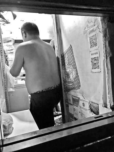 6月16日晚8時(shí)許,北青報(bào)記者再次來到“望京小腰(××店)”,看到窗口外圍聚了數(shù)名外賣平臺(tái)的送餐員,等待取餐。燒烤店內(nèi),兩名青年男子,一人赤膊,手拿多份訂單配置菜品、刷油、撒調(diào)料,另一人背身在燒烤架上烤制菜品。食物烤好后,赤膊男子用錫紙包裹好,外面套上紙袋和塑料袋,遞給送餐員。北青報(bào)記者詢問老板可否堂食,老板答復(fù)稱“可以”,但是要借用麻辣燙店內(nèi)桌椅。
