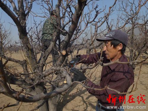 原平子干鄉(xiāng)子干村萬畝酥梨基地成為該村發(fā)家治富的支柱產(chǎn)業(yè)。開春以來,該村村民借市委“冬季行動”強勁東風,早動手、干實事,快致富。他們及時走進田間地頭開展梨園管理,施肥、刮皮、噴藥、剪技。圖為該村村民伍師傅正在為梨樹剪技。(李玉生)