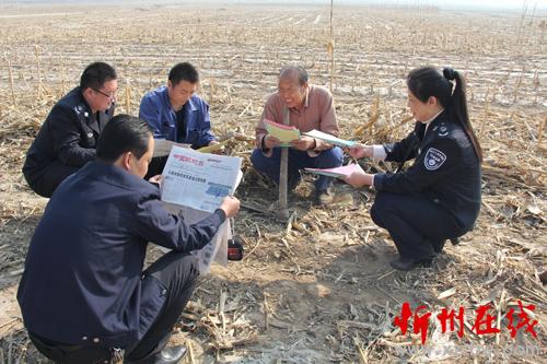 怎樣把《中華人民共和國(guó)大氣污染防治法》和《五臺(tái)縣人民政府嚴(yán)防森林火災(zāi)的通告》宣傳到人?五臺(tái)縣環(huán)境保護(hù)局、環(huán)境監(jiān)察大隊(duì)分組劃片,組織環(huán)保人員深入到田間地頭,面對(duì)面讀報(bào)給農(nóng)民聽(tīng),手遞手散傳單讓農(nóng)民看,為農(nóng)民解釋燒秸稈、燒地堰、燒荒等野外違規(guī)用火行為的危害。臺(tái)城鎮(zhèn)西關(guān)村66歲的農(nóng)民張存在就高興地對(duì)縣環(huán)境監(jiān)察人員說(shuō):“你們這樣解釋,咱懂,“地頭環(huán)保”咱農(nóng)民也記得牢,我家4畝地的秸稈保證不燒一根,咱漚糞去,多打糧,又不污染。”圖為地頭宣傳環(huán)境保護(hù),增強(qiáng)農(nóng)民環(huán)保意識(shí)。(金俊賢 攝)