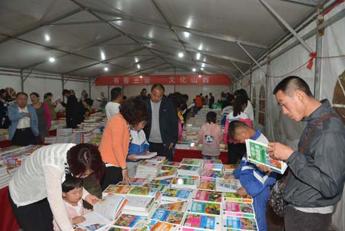 近日,定襄縣金鼎廣場的圖書展銷受到廣大群眾的熱烈歡迎,主辦方專門設(shè)置了閱覽區(qū),群眾不僅能享受圖書折扣,還能免費(fèi)閱覽所有圖書。此次活動是定襄縣“我的中國夢,書香飄萬家”全民閱讀推廣主題活動之一,為期15天。圖為5月12日,群眾在書展上購書閱讀。(劉小苗)
