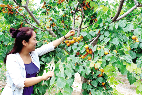 6 月22 日,在原平市子干鄉(xiāng)停旨頭村栗文田經(jīng)營(yíng)的“農(nóng)家樂”采摘園中,游客正在采摘?jiǎng)倓偝墒斓拇簏S杏。近年來(lái),原平市大力發(fā)展觀光農(nóng)業(yè),促進(jìn)農(nóng)民增收致富,今年黃杏、油桃、酥梨、駿棗又獲豐收,迎來(lái)一批批游客。(曹申義 攝)