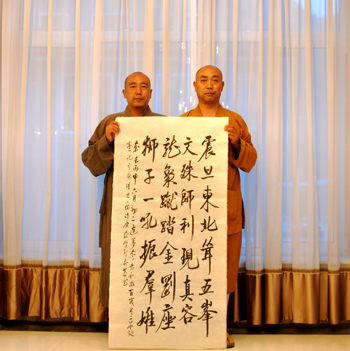 利用閑暇,筆者與行腳僧進行了簡單溝通,了解到法師來自廣東省韶關云門山大覺禪寺,法名圣泰,是云門宗第十五代弟子,酷愛書法,且仰慕五臺山多時,此行特用且行且書的方式了卻多年朝圣心愿。
