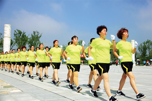 7 月17 日,“康樂健步走”團隊在忻州城區(qū)云中河景區(qū)開展“我運動,我健走,我健康,我快樂,我幸福”千人健步走活動,慶祝該團隊成立兩周年?!翱禈方〔阶摺眻F隊以“健康快樂”為口號,目前在全市已發(fā)展到50 余支健走隊伍。(吉建平 攝)
