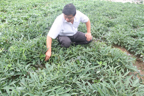 為了充分發(fā)揮紅薯新品種龍薯一號(hào)的優(yōu)良中性,加快新品種的推廣步伐。7月20日,原平市農(nóng)業(yè)學(xué)校種植科劉主任在實(shí)訓(xùn)基地查看長(zhǎng)勢(shì)喜人的新品種紅薯。近年來(lái),該校利用新技術(shù)培育脫毒苗進(jìn)行新作物、新品種的試驗(yàn)示范,為農(nóng)民脫貧增產(chǎn)增收發(fā)揮了積極作用,拓寬了農(nóng)民致富路子。(褚震 攝)