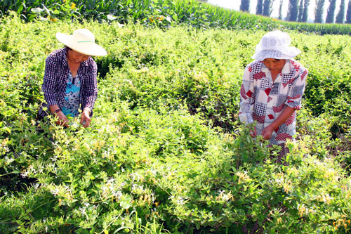 7月28日,原平市桃園村農(nóng)民正在采摘滿地盛開的金銀花,他們高興地說“種的金銀花,如今有錢花。該市積極引導(dǎo)農(nóng)民調(diào)整農(nóng)業(yè)生產(chǎn)結(jié)構(gòu),大力發(fā)展特色高效種植業(yè),促進(jìn)農(nóng)業(yè)增產(chǎn),農(nóng)民增收, 加快了脫貧致富達(dá)小康步伐。(趙春曉 攝)