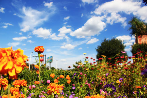 原平一座美麗富饒的北方小城,進(jìn)入秋天,仍然是美不勝收,鮮花簇?fù)?,泛黃的枝頭掛在秋天的果實(shí),陪襯著藍(lán)天白云。圖為9月1日,原平街景一角。(吉建平 攝)