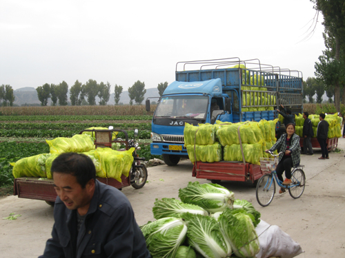 10月23日,河曲縣南園村大白菜種植戶(hù)忙著砍白菜、撕老幫、裝袋子,幫助內(nèi)蒙古準(zhǔn)格爾旗、伊金霍洛旗和本縣沙泉鄉(xiāng)的客戶(hù)裝白菜,熱鬧中洋溢著豐收的喜悅。該村充分利用土肥水富、交通便利等優(yōu)越條件,大力發(fā)展蔬菜產(chǎn)業(yè),形成了“一村一品”產(chǎn)、供、銷(xiāo)格局,成為晉陜蒙交匯地區(qū)蔬菜基地。特別是近千畝優(yōu)質(zhì)大白菜深受縣內(nèi)外經(jīng)銷(xiāo)商和消費(fèi)者青睞,每年霜降前后,周邊市縣前來(lái)購(gòu)買(mǎi)的菜販絡(luò)繹不絕。(賈金理攝)