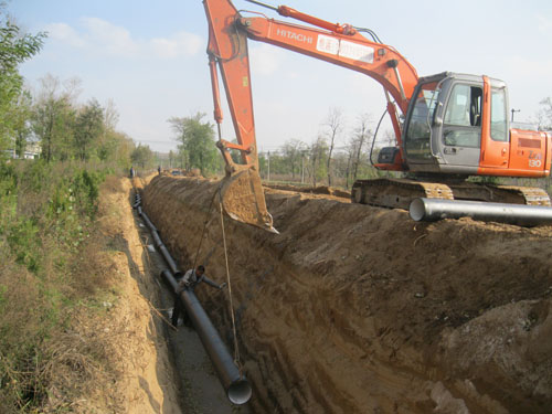 10月30日,河曲縣新建縣城供水工程工地上,挖掘機正在吊放水管。隨著氣溫下降,施工單位排好工期,緊鑼密鼓作業(yè),確保上凍前完成水管接合和掩埋任務。整體工程完工后,可保障7萬人在用水高峰期能夠正常用水。(賈金理 攝)