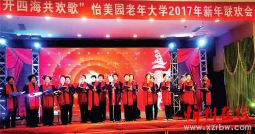 2016年12月29日,怡美園老年大學(xué)舉辦了“花開四海共歡歌”迎新年晚會(huì),怡美園老年大學(xué)的200多名學(xué)員與城區(qū)的文藝愛好者同臺共演了豐富多彩的喜慶節(jié)目,演員多數(shù)是中老年人。晚會(huì)上展演了聲樂、器樂、歌舞、健身操等40多個(gè)節(jié)目,臺上精彩的演出,贏得了觀眾的陣陣掌聲。(韓麗萍 攝)
