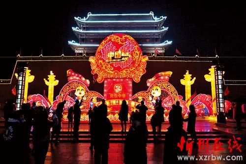 距離元宵節(jié)還有幾天時間,但忻州城區(qū)北城門樓的南北廣場上已展開吉祥喜慶的“中國夢”與“錢袋子”大型燈展,吸引眾多市民前來觀賞。(魯明強(qiáng) 攝)