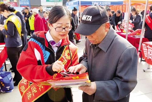 3月15日,忻州城區(qū)體育廣場上以“網(wǎng)絡(luò)誠信消費無憂”為主題的3·15國際消費者權(quán)益日宣傳活動火熱進行?;顒蝇F(xiàn)場,各部門和企業(yè)通過發(fā)放宣傳資料、設(shè)立咨詢臺、現(xiàn)場受理群眾投訴舉報、提供服務(wù)等方式,宣傳《消費者權(quán)益保護法》、《反不正當競爭法》、《無照經(jīng)營查處辦法》等法律法規(guī)以及食品藥品安全、識假辨假等各類知識,吸引了眾多群眾積極參與。受理投訴臺前,陸續(xù)有消費者前來投訴,且有不少年輕人,所反映的問題既有涉及家具、汽車等金額較大的線下消費活動,也有通過電商平臺進行的線上交易。市工商局、消費者協(xié)會的工作人員將消費者投訴的問題一一記錄在冊,并表示會盡快調(diào)查處理。本版圖片攝影 魯明強 王 菲