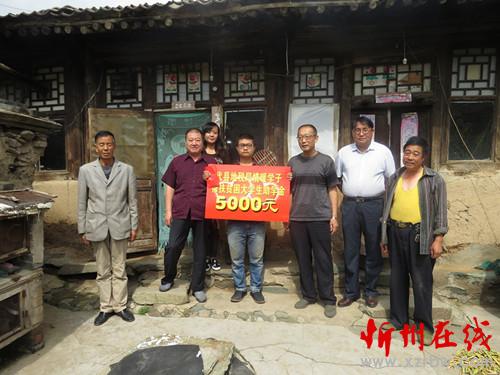 圖為代縣地稅局情暖學(xué)子,為定點(diǎn)扶貧村聶營(yíng)鎮(zhèn)康上莊貧困大學(xué)生卜桂元捐贈(zèng)助學(xué)金5000元,解了他全家的燃眉之急。(代縣地稅局李九龍 攝)
