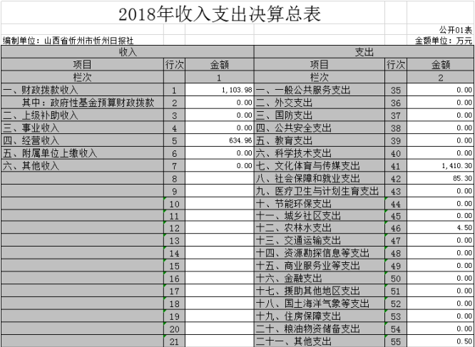 (三)部門決算單位構(gòu)成:忻州日報社是一級預(yù)算單位,無下屬單位。部門預(yù)算只有一個單位,即忻州日報社。