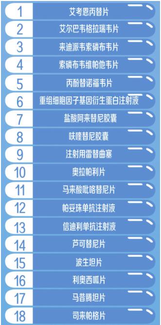 國家醫(yī)保局醫(yī)藥服務(wù)管理司司長熊先軍介紹,此次談判成功的藥品多為近年來新上市且具有較高臨床價(jià)值的藥品,涉及癌癥、罕見病、風(fēng)濕免疫、心腦血管、消化等10余個(gè)臨床治療領(lǐng)域。重點(diǎn)領(lǐng)域的5個(gè)基本藥物全部談判成功,22個(gè)抗癌藥、7個(gè)罕見病用藥、14個(gè)慢性病(含糖尿病、乙肝、風(fēng)濕性關(guān)節(jié)炎等)用藥、4個(gè)兒童用藥談判成功,進(jìn)一步優(yōu)化了目錄結(jié)構(gòu)。