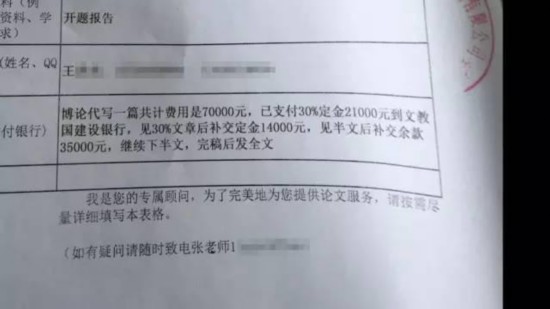 東北一所高校的一位在讀博士生定制的博士論文。全文12萬字,全款高達7萬元,買家已經(jīng)支付了2萬多元的訂金