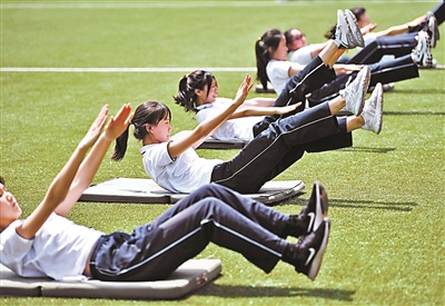 仰臥起坐,慢跑、拋擲實心球、排球……昨天上午10時35分,北京市第十八中學初三(8)班同學們的體育課開始了。3位體育老師帶著同學們在操場上進行體育鍛煉。據(jù)悉,下月中旬,本市初三的學子們將迎來中考體育考試。與往年不同,今年北京中考體育考試在考試時間上調整為6月10日開始、7月1日前完成。在組織形式上改為隨堂考試。