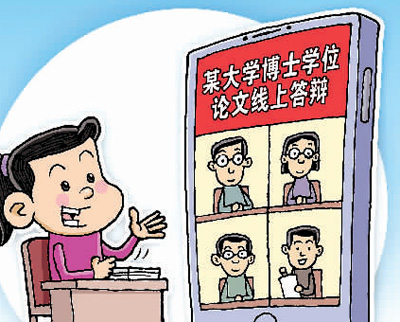 “線上答辯前,要調(diào)整好狀態(tài)、調(diào)試好設(shè)備,確保答辯過程的順暢?!薄巴ㄟ^屏幕答辯,體會(huì)到了數(shù)字化時(shí)代網(wǎng)絡(luò)的便捷?!睘榻鉀Q防疫期間畢業(yè)生返校難的問題,許多高校推出“云答辯”。