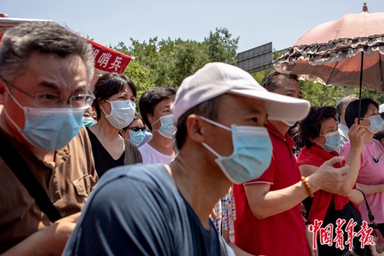 7月7日上午,北京市第八十中學(xué)門口,高考語文考試結(jié)束后,等待考生的家長們。中青報(bào)·中青網(wǎng)記者 李雋輝/攝
