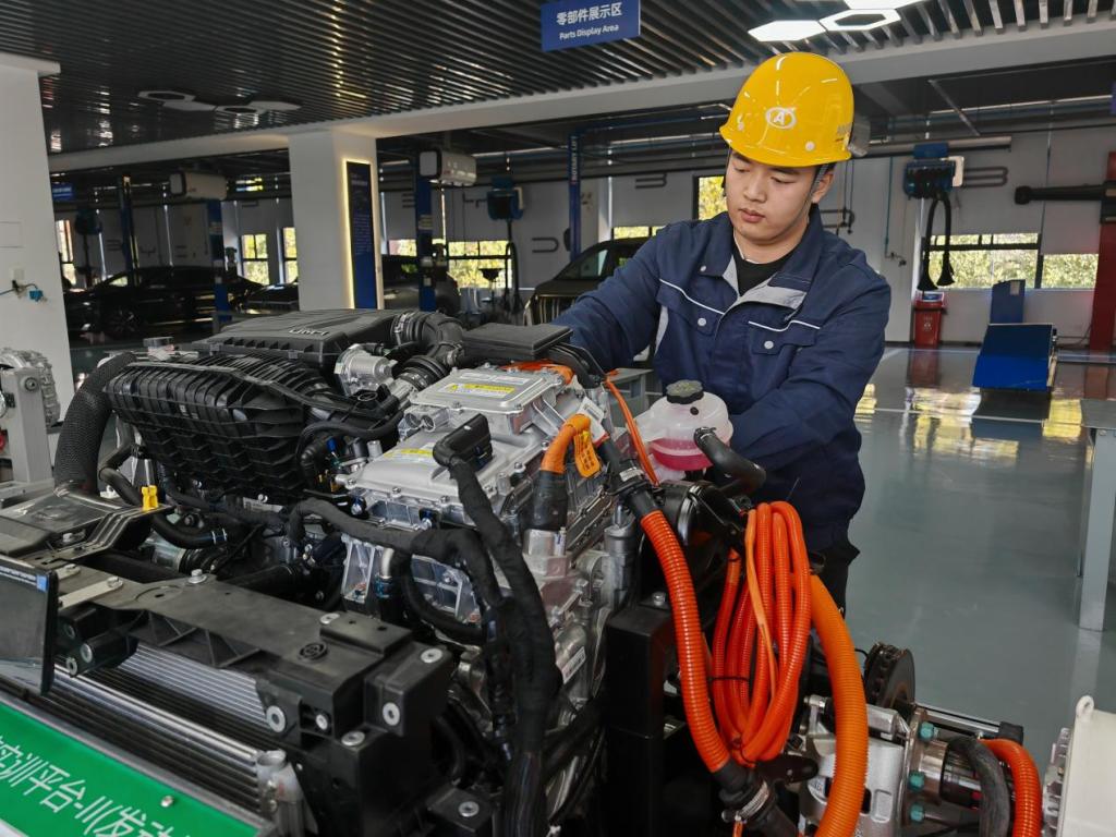 為支撐新能源汽車產業(yè)崛起,河南省全省高職院校開設相關專業(yè)點419個,相關在校生22.14萬人。在河南機電職業(yè)學院與比亞迪共建的現場工程師學院,圍繞“現場工程師”培養(yǎng)開發(fā)了37門項目化課程。該校每年向鄭州航空港區(qū)比亞迪工廠輸送1000余名技能人才,不少學生迅速成長為產線骨干?!皩W校通過‘項目+人才’雙交付育人模式,極大地增強了人才培養(yǎng)與企業(yè)需求的匹配度?!北葋喌峡傃b車間主任如是說。
