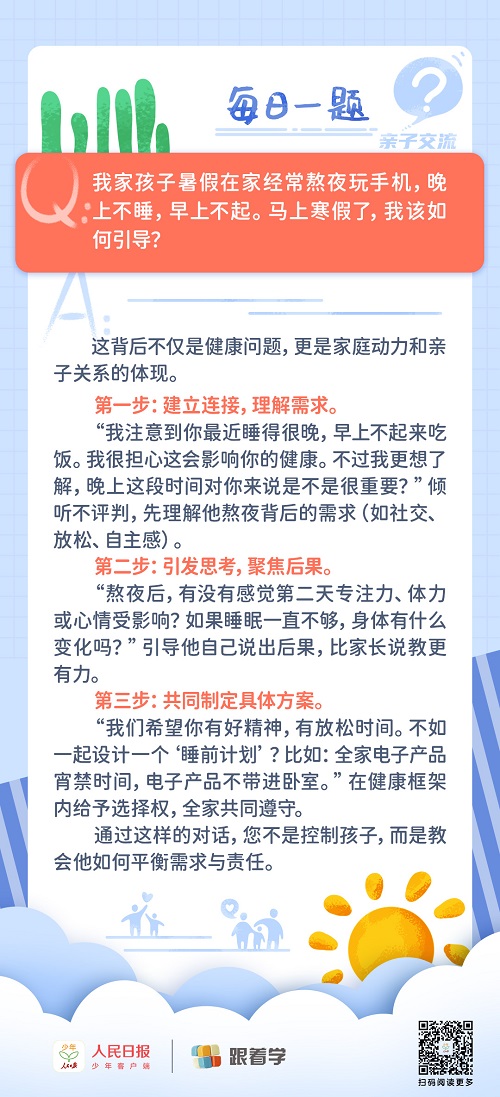 每日一題丨孩子假期在家,經(jīng)常熬夜玩手機至凌晨,家長該如何引導(dǎo)?