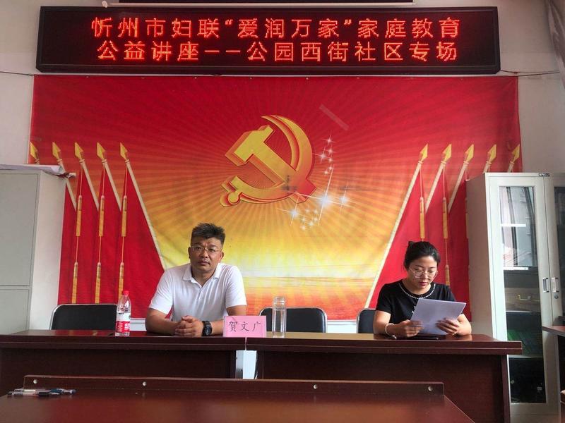7月22日下午,忻州市長征小學組織三年級30余名學生家長在世紀花苑物業(yè)三樓參加了由忻州市婦聯(lián)組織的“愛潤萬家”家庭教育公益講座,講座由心理學研究中心賀文廣會長主持。